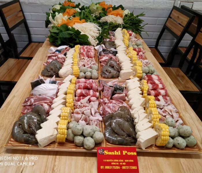 Sushi Poss thu hút khách hàng không chỉ bởi không gian sạch sẽ và nguyên liệu đảm bảo, mà còn bởi hương vị tuyệt vời của sushi. Sushi và sashimi tại đây luôn tươi ngon, không bị tanh, với hương vị đặc trưng của ẩm thực Nhật Bản. Ngoài ra, Sushi Poss còn phục vụ các món lẩu phổ biến như lẩu trái cây, lẩu Thái, lẩu kim chi, với giá chỉ từ 150.000 – 350.000, đảm bảo ngon miệng và đầy đủ lựa chọn. Đến với Sushi Poss, bạn sẽ có một trải nghiệm sushi ngon, bổ, và vô cùng hấp dẫn!