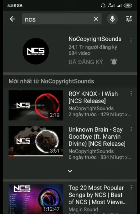 Mở ứng dụng > Tìm kiếm trên YouTube > Chọn Bài hát để nghe