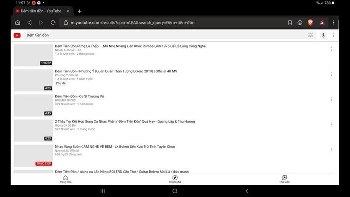 Bước 2: Bạn sẽ đến trang Youtube, tại thanh tìm kiếm, nhập tên bài hát và chọn video.