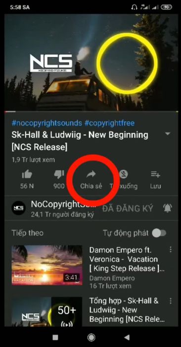 Bước 2: Nhấn vào nút xem và chọn Chia Sẻ
