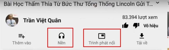 Bước 2: Kích hoạt chế độ Nền, tại video đang xem, chọn Nền và sau đó Cho Phép.