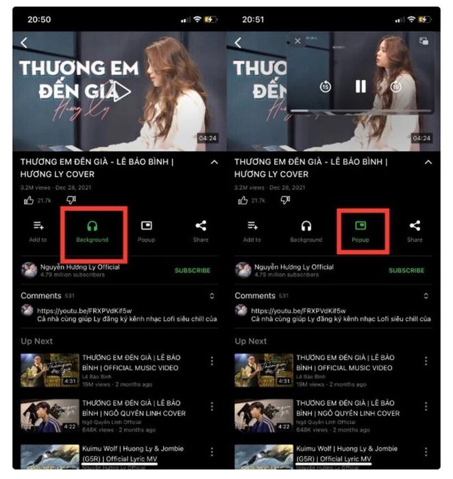 Mở app > tìm video > chọn Nền và Trình Phát Nổi để nghe nhạc Youtube cả khi tắt máy.