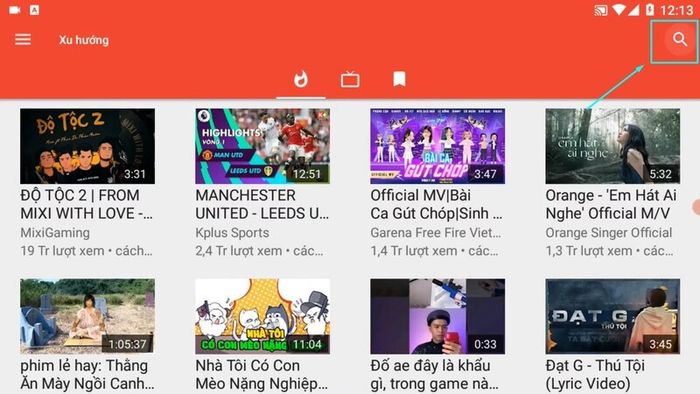 Mở ứng dụng và chọn tìm kiếm -> Nhập Youtube