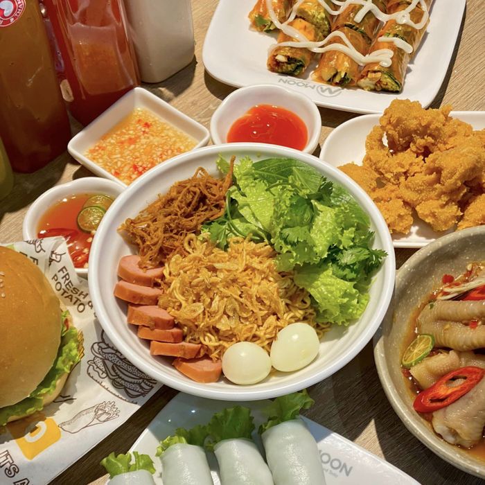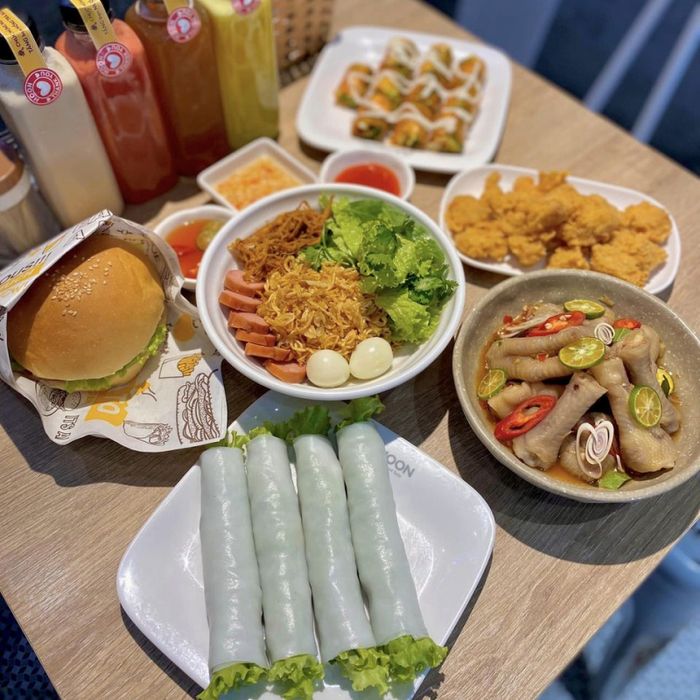 Thưởng thức combo ăn vặt hoàn hảo tại Moon Quán với sự kết hợp độc đáo của nem chua rán, Salad rau xanh, Chân gà sả ớt và Kimpap chiên. Mỗi miếng thức ăn mang đến trải nghiệm đầy đủ vị giác: chua, cay, bùi, ngọt đậm đà, giòn sật. Gà rán tại đây được phục vụ kèm nhiều loại sốt độc đáo, hứa hẹn làm hài lòng thực khách khó tính nhất. Nhân viên phục vụ chuyên nghiệp, tận tâm.