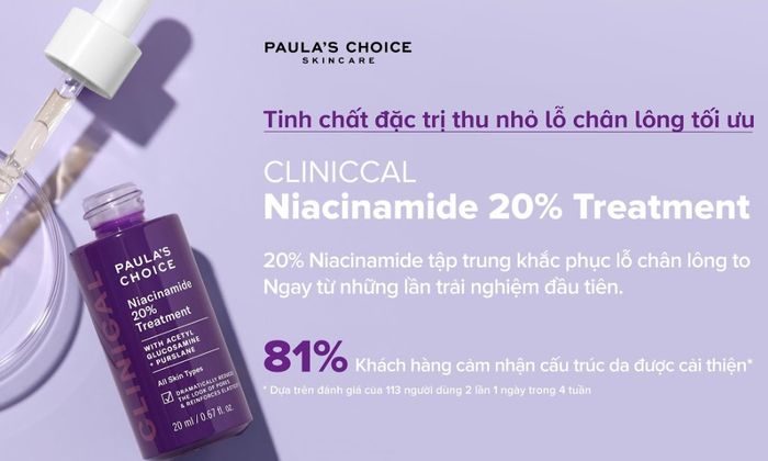 Serum Paula’s Choice là lựa chọn hàng đầu trong danh sách serum se khít lỗ chân lông. Nhận được những đánh giá tích cực từ cộng đồng yêu làm đẹp, sản phẩm này chứa thành phần chính là 20% Niacinamide (Vitamin B3) và chiết xuất rau sam, giúp cải thiện bề mặt da và thu nhỏ lỗ chân lông một cách hiệu quả.