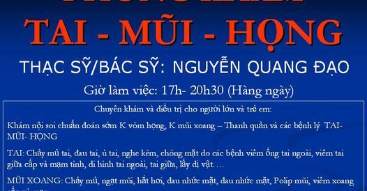 Phòng Khám Tai Mũi Họng BS Vũ Nam Hải chuyên khám, điều trị cho Người lớn, Trẻ em: