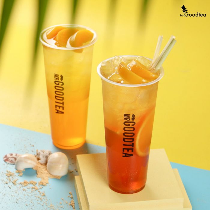 Mr. Good Tea là một thương hiệu trà sữa nổi tiếng trên khắp cả nước. Đặc biệt ở đây, trà đào cam sả được biến tấu với hương vị thơm lừng của sả và tươi mát của cam, kèm theo những miếng đào vàng ươm ngon, tạo nên một trải nghiệm đặc biệt cho thực khách. Đến với Mr. Good Tea, bạn không chỉ được thưởng thức trà đào cam sả ngon mắt mà còn có cơ hội thưởng thức nhiều loại thức uống khác như trà xanh kem sữa, sữa tươi kem trứng trân châu đường đen, và nhiều loại trà sữa khác. Quán còn nổi tiếng với không gian hiện đại, phù hợp cho các buổi hẹn hò, gặp gỡ bạn bè hay nhóm nhỏ. Hãy ghé thăm Mr. Good Tea để trải nghiệm không khí sôi động và thưởng thức trà đào cam sả thơm ngon.