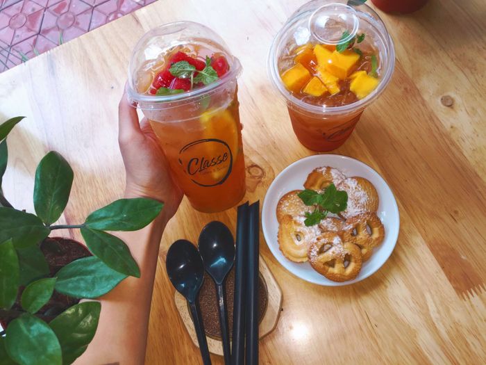 Có ai còn nhớ hương vị của "Trà đào cam sả" - người anh cả của chúng mình không? Với sự hoà quyện của đào, cam và sả đã tạo nên một hương vị thanh mát, nhẹ nhàng nhưng đầy cuốn hút. Để cho một cuộc hẹn thêm phần đầy đủ thì đừng quên gọi thêm chiếc bánh "Passion Fruit Mousse" nhé. Với lớp thạch chanh dây bên trên, phần kem với độ mềm vừa phải, sẽ khiến các bạn ăn không thể ngừng với anh bạn này đó. Đó là những gì bạn sẽ luôn tìm thấy ở Quán Classe Coffee n Books, một nơi ẩn náu hoàn hảo cho những ai thích sự yên tĩnh. Ai bảo chúng ta không thể có những ngày êm đềm ngay trung tâm thành phố vội vã? Chỉ cần đặt chân đến đây nấp một hôm, bỏ mặc thế giới ngoài kia là mỗi ngày sẽ luôn dịu dàng như mọi ngày.