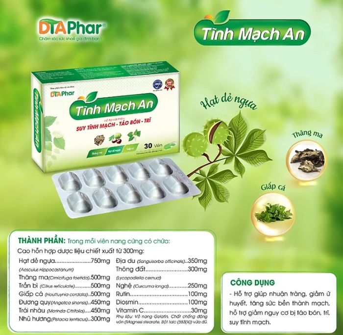 - Chiết xuất từ hạt dẻ ngựa, diếp cá, thăng ma, nhàu, đương quy, Diosmin, địa du...