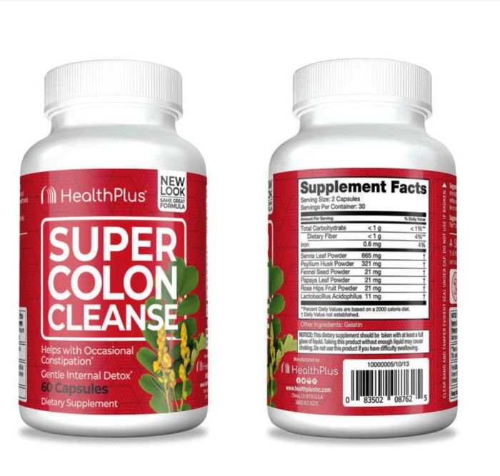 - Sản phẩm viên uống nhuận tràng Health Plus Super Colon Cleanse hỗ trợ làm nhẹ người, thoải mái.