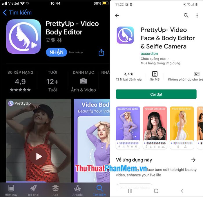- Link tải PrettyUp cho iOS tại đây: https://apps.apple.com/us/app/prettyup-video-body-editor/id1544211932