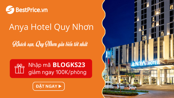 Chỉ vài bước chân là đến bãi biển Quy Nhơn, Anya Hotel là lựa chọn không thể bỏ qua khi bạn tìm khách sạn giá tốt và gần biển nhất. Với gam màu trắng, xám, ghi, bạc kết hợp với sắc vàng tinh tế, tạo nên không gian thân thiện và sang trọng. Bạn sẽ được thưởng thức đa dạng dịch vụ giải trí, thư giãn như bể bơi, quầy bar, phòng gym, khu vui chơi trẻ em, spa, phòng tiệc, hòa mình trong không gian biển xanh mát.
