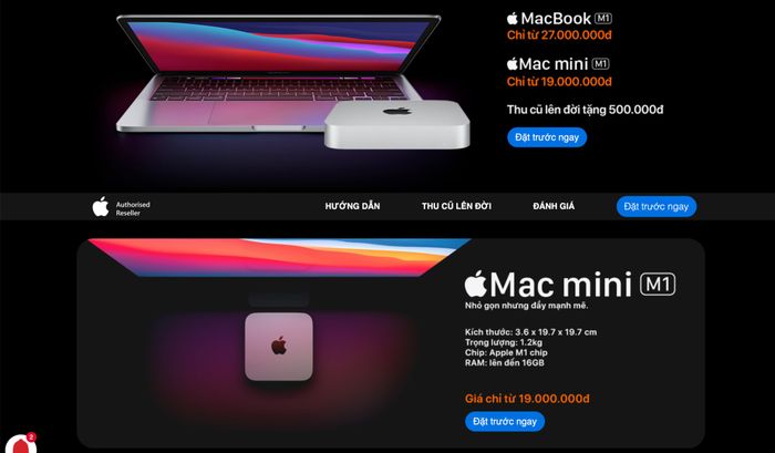 - Mac mini M1: 18.299.000đ (256GB) / 23.499.000đ (512GB)