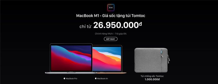 Shopdunk tổ chức chương trình đặt trước MacBook Air, MacBook Pro và Mac mini M1 với ưu đãi là một túi chống sốc Tomtoc trị giá 1 triệu đồng cùng hỗ trợ trả góp 0% hoặc thu cũ đổi mới.