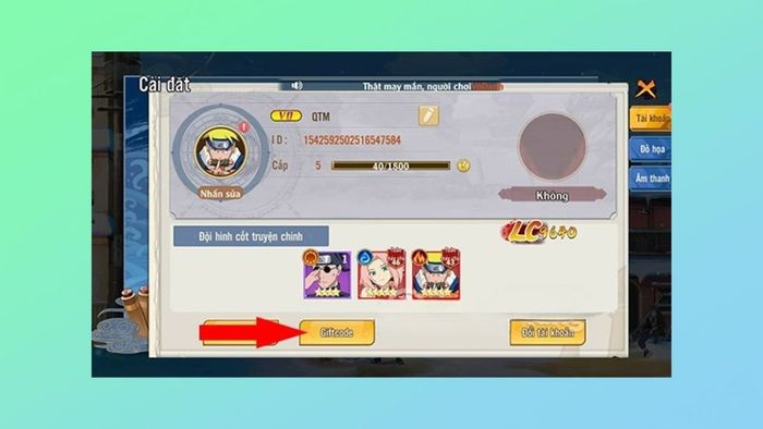 - Bước 2: Trong Cửa Sổ Cài Đặt, Nhấn Chọn Giftcode.