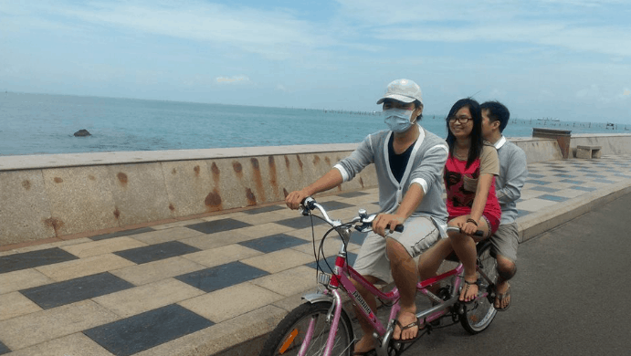 Ngoài ra, Bãi Trước còn cung cấp dịch vụ cho thuê xe đạp đôi. Một chuyến đi dạo xuyên qua các con phố, đưa bạn rời khỏi mọi lo âu, để tiếng cười vang vọng hòa quyện với sóng biển, chỉ cần nghe thôi cũng đủ phải không nào?