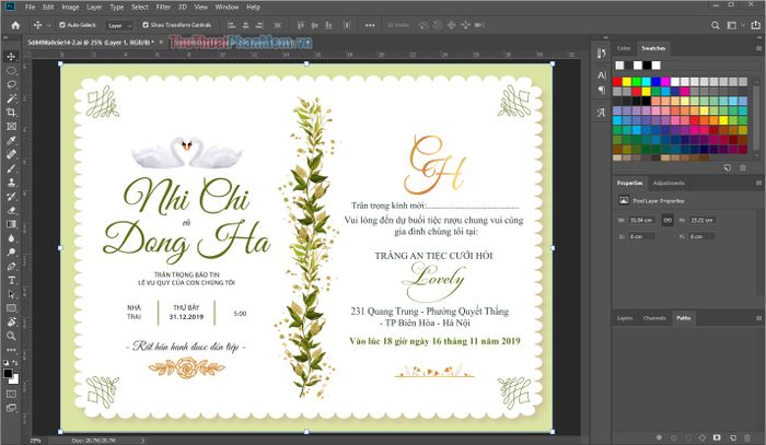 Adobe Photoshop, công cụ chỉnh sửa hình ảnh hàng đầu thế giới, không chỉ giúp tạo ra thiệp cưới đẹp mắt mà còn mang lại trải nghiệm sáng tạo không giới hạn. Cộng đồng lớn của Photoshop cung cấp nguồn tài nguyên và mẫu thiết kế phong phú. Khả năng in ấn trực tiếp là điểm mạnh lớn, giúp tiết kiệm thời gian và công sức.