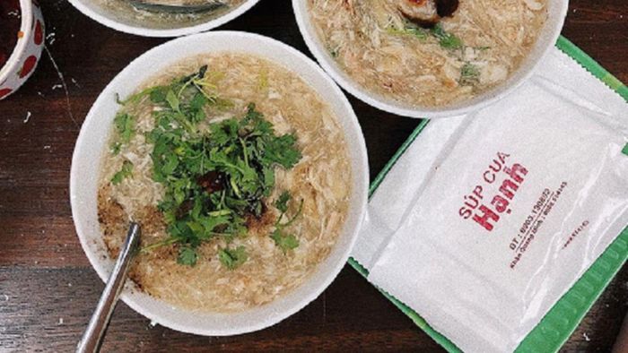 Súp cua Hạnh là một trong những địa chỉ không thể bỏ qua trong danh sách những quán ngon Sài Gòn Mytour. Nếu bạn muốn thưởng thức một tô súp cua ngon tuyệt, đây chính là nơi bạn nên đến. Một bát súp cua Hạnh đơn giản chỉ với thịt cua, trứng, nấm rơm và rau thơm, nhưng lại để lại hương vị tuyệt vời. Quán có kích thước nhỏ nhưng luôn sạch sẽ, và các món ăn ở đây luôn được chế biến tinh tế, thu hút rất nhiều thực khách.