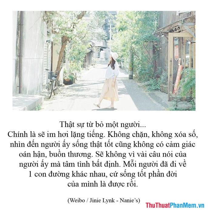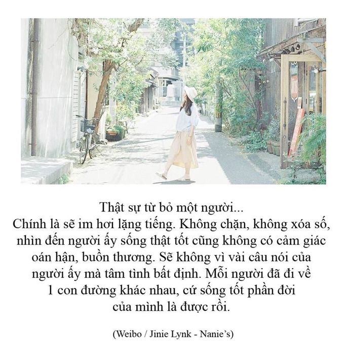 Buông tay chân chính là không hủy kết bạn, không xóa tin nhắn, không chặn số điện thoại, chỉ là giữ nguyên bạn ở đó nhưng không bao giờ nói chuyện với bạn nữa. Người gọi điện, bạn vẫn nghe máy, nhưng sau câu chào, bạn sẽ cúp máy ngay lập tức, yên lặng và do dự.