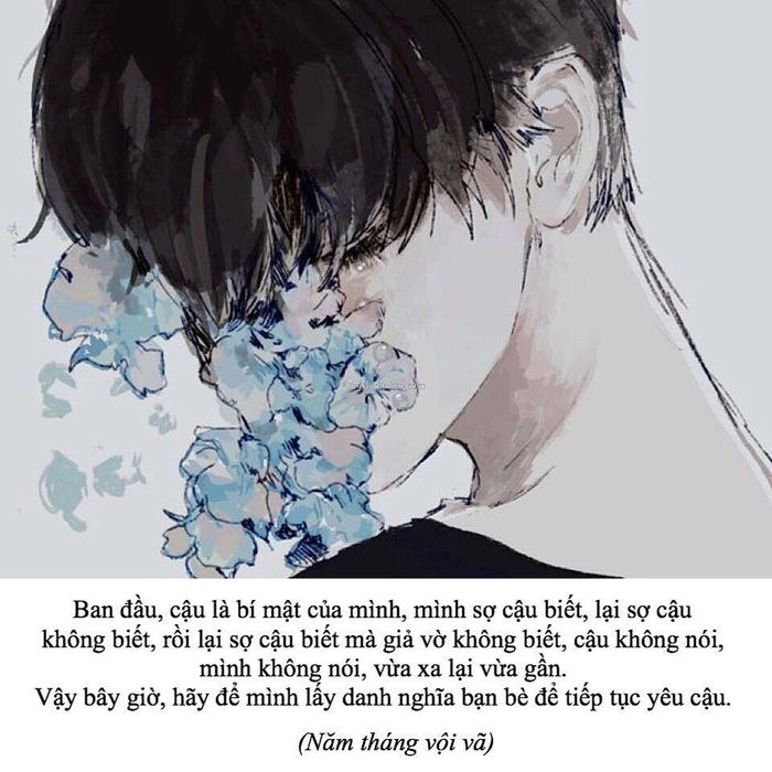 Mình ơi, mình đã không còn hứng thú với ai nữa đâu. Mình thường nói với đứa bạn, nếu ai bị lãnh cảm với tình yêu, một là họ đã hết lòng yêu một người rồi bị phụ bạc, hai là họ chưa gặp được người có thể khiến họ hết lòng để yêu. Cuộc sống mà thiếu tình yêu người ta đâu có chết, nhưng vẫn thà chết để giữ chặt một tình yêu, một tình yêu mà tuổi trẻ chẳng bao giờ thắm lại.