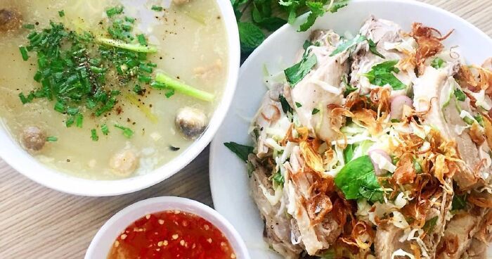 Lên lịch trưa ở Đà Nẵng với món cháo vịt thơm ngon tại cháo vịt Thuỷ. Địa điểm thuận lợi trên đường Ngũ Hành Sơn, quán nổi tiếng với tô cháo vịt hấp dẫn. Cháo sánh mịn, thịt vịt đầy ắp và đặc biệt với nước mắm gừng miền Trung độc đáo. Hãy thưởng thức cháo kèm theo nước chấm này để trải nghiệm hương vị khác biệt.