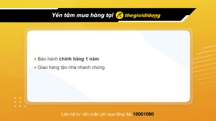 - Hưởng chính sách bảo hành chính hãng 1 năm đảm bảo chất lượng sản phẩm.