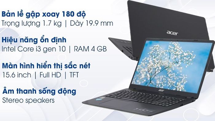 Laptop Acer Aspire A315 56 32TP i3 không chỉ gọn nhẹ mà còn có cấu hình ổn định, hoàn hảo cho sinh viên và nhân viên văn phòng di chuyển. Bản lề độc đáo mở rộng 180 độ, thuận tiện cho việc chia sẻ màn hình trong các cuộc họp.
