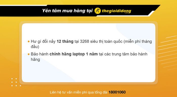 - Bảo hành chính hãng laptop suốt 1 năm tại các trung tâm dịch vụ chính thức của hãng.