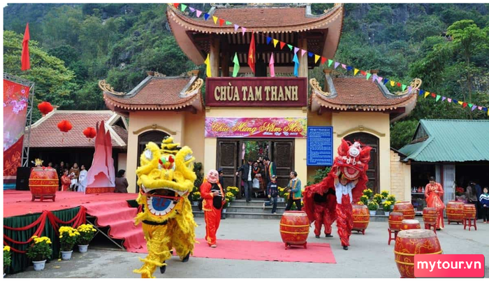 Khi đến chùa Tam Thanh, âm nhạc trống vang dội, màn múa sư tử và rồng điêu luyện làm cho không khí trở nên sôi động và nhiệt huyết. Người dân và du khách tham gia dâng hương, cầu nguyện, và thưởng thức vẻ đẹp của động Tam Thanh. Lễ hội tại Chùa Tam Thanh là một trải nghiệm văn hóa tâm linh không thể bỏ qua.