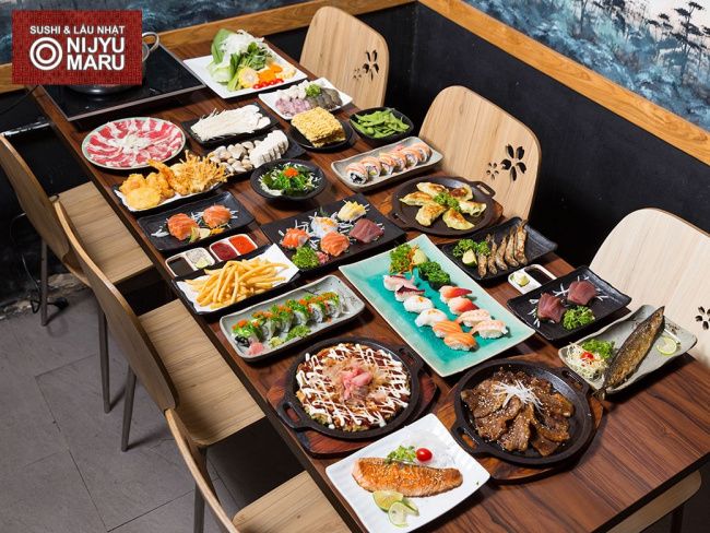 Nhà hàng Nijyu Maru, địa điểm buffet hải sản quận 9, đa dạng thực đơn với những món lẩu miso, lẩu cay Nhật Việt, lẩu kim chi hấp dẫn. Các nguyên liệu tươi ngon từ đồ nhúng lẩu như ba chỉ bò Mỹ, bắp bò, tôm, mực đảm bảo chất lượng.