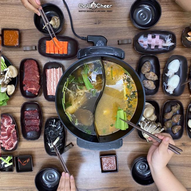 Khi ghé thăm đây, hãy lựa chọn loại nước lẩu phong phú như lẩu Thái, lẩu nấm, lẩu hai ngăn. Đồ nhúng được bày trên bàn truyền và bạn hoàn toàn tự do lấy theo khẩu vị riêng, đặc biệt không có sự giới hạn nào.