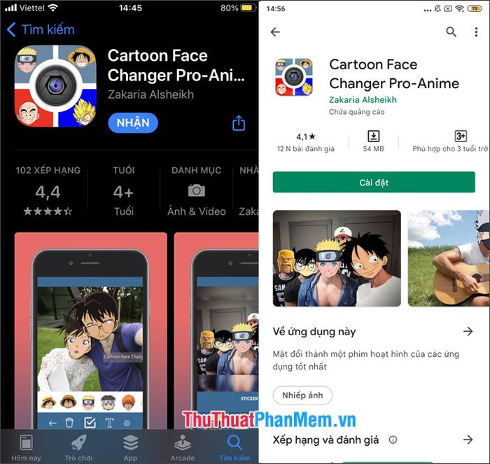 - Link tải về cho iOS: https://apps.apple.com/us/app/cartoon-face-changer-pro-anime/id1430211307