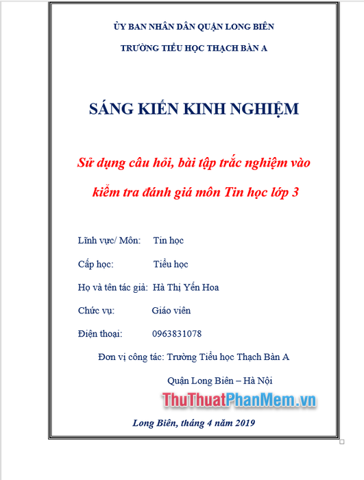 Đề tài: Tận dụng câu hỏi, bài tập trắc nghiệm trong kiểm tra đánh giá môn Tin Học Lớp 3 - Một cách tiếp cận mới và độc đáo để tạo sự đổi mới trong quá trình học tập.