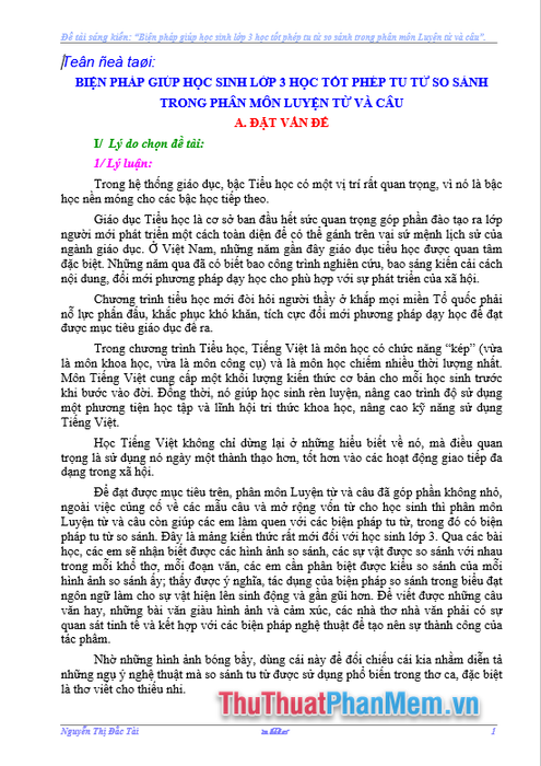 Đề Tài SKKN: Hỗ Trợ Học Sinh Lớp 3 Nắm Bắt Phép Tu Từ So Sánh trong Môn Luyện Từ và Câu. So sánh là một phương tiện phổ biến trong giao tiếp hàng ngày, và phép tu từ so sánh giúp chúng ta hiểu rõ hơn về các sự vật và đối tượng trừu tượng.