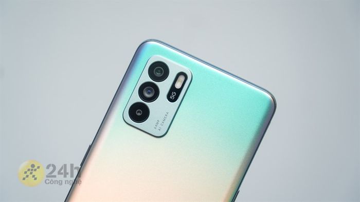 Reno6 Z 5G vẫn giữ vững thiết kế quen thuộc như trên Reno5 với lớp mặt lưng Reno Glow được làm từ kính kết hợp hiệu ứng gradient đẹp mắt. Điểm đáng chú ý trên Reno6 Z 5G là màn hình AMOLED 6.43 inch độ phân giải Full HD+.