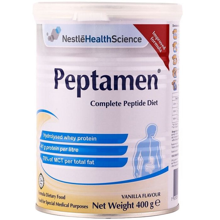 – Peptamen 400g với thành phần 100% đạm whey thủy phân, giúp cơ thể hấp thụ protein một cách dễ dàng mà không gây tiêu chảy.
