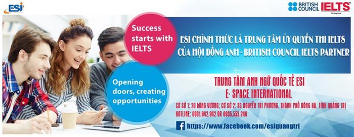 Trung tâm Anh Ngữ Quốc Tế ESI là địa chỉ uy tín cho việc ôn thi IELTS tại Quảng Trị. ESI tự hào là trung tâm đào tạo tiếng Anh được Cambridge công nhận và được Hội đồng Anh (British Council) uỷ quyền tổ chức thi chứng chỉ IELTS. Đội ngũ giáo viên đa dạng, từ giáo viên Việt Nam xuất sắc đến giáo viên bản ngữ có kinh nghiệm. Cơ sở vật chất hiện đại, phương pháp giảng dạy linh hoạt theo tiêu chuẩn quốc tế. Trung tâm cam kết đạt được kết quả cao cho học viên.