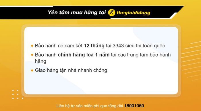 - Cam kết bảo hành trong 12 tháng tại 3343 siêu thị trên toàn quốc.