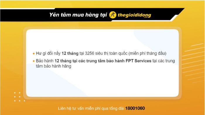 - Bảo hành dài hạn 12 tháng tại các trung tâm chăm sóc khách hàng FPT Services trên khắp địa bàn.