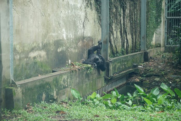 Con khỉ đang nằm thư giãn dường như không màng xung quanh.
