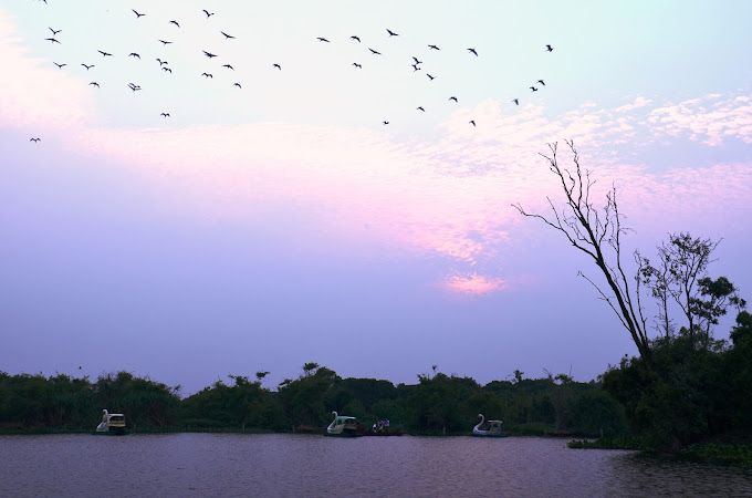 Sau mỗi trận lụt, đàn cò và vạc trở về đảo, nơi họ xây tổ và sinh sản. Đảo cò, là đất đai giữa lòng hồ, được rặng tre xanh bao quanh. Cò quay về làm tổ từ tháng 9 đến tháng 4 năm sau. Trong những ngày này, du khách có cơ hội chiêm ngưỡng nhiều chú cò con vừa mới chào đời đứng trên những cành tre.