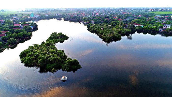 Theo truyền thuyết, đầu thế kỷ 15, lụt lớn làm đập đê sông Hồng vỡ 3 lần, tạo nên đảo xanh giữa lòng hồ. Cây cỏ trên đảo mọc um tùm, dưới nước là nơi sinh sống của tôm cá.