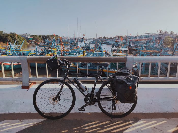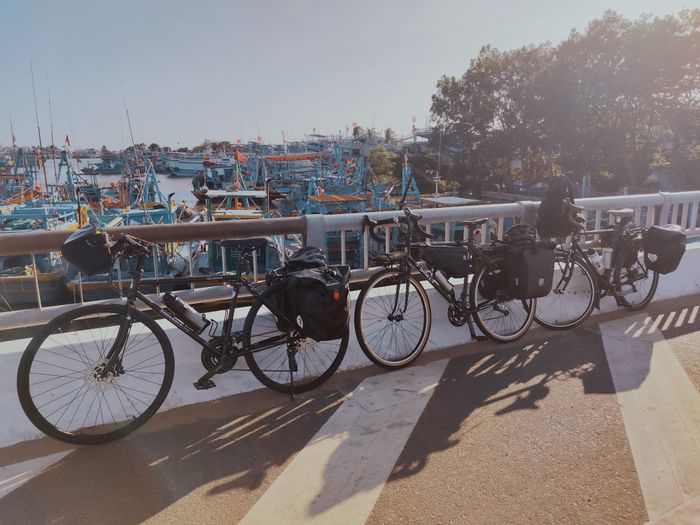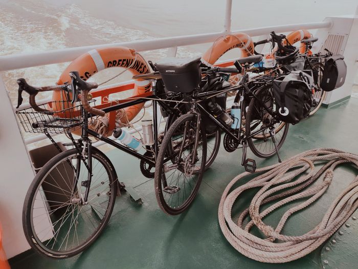 Chiếc xe của mình khi lên đủ phụ kiện đây. 8h sáng, mình đi từ nhà ra bến tàu cao tốc Bạch Đằng để khởi hành. Tụi mình cần trả thêm 100.000đ cho tiền vé xe đạp. Tàu đi khoảng 2 tiếng thì tới bến tàu Vũng Tàu. Từ đó tụi mình bắt đầu đạp xe đi Long Hải.