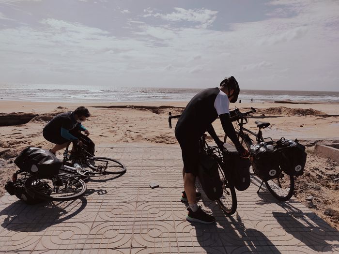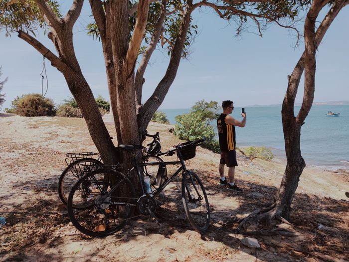 Đi dạo bên bờ biển và uống một tách cà phê vào buổi sáng trước khi lên đường. Trong ngày thứ 3, chúng tôi tiếp tục đạp xe từ Lagi đi Mũi Né. Do dịch Covid nên Mũi Né vào thời điểm này vắng vẻ và nhiều nhà hàng, resort đã đóng cửa. Chúng tôi cũng thuê được một resort với giá chỉ tầm 30% so với trước đây.