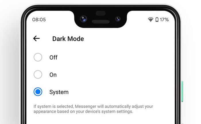 Sáng nay, khi cập nhật Messenger Android lên phiên bản mới nhất, cuối cùng tính năng Dark Mode đã được tích hợp. Bạn có thể vào Cài đặt của Messenger, chọn Chế độ Tối, và chọn Hệ thống.