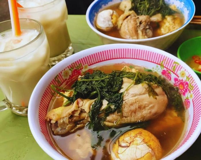Menu đa dạng của quán bao gồm mì gà và trứng vịt lộn với giá cả hợp lý, là lựa chọn tuyệt vời cho bữa trưa ngon miệng.