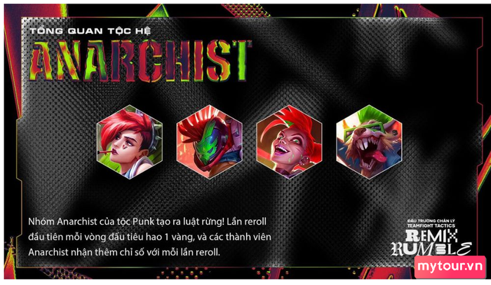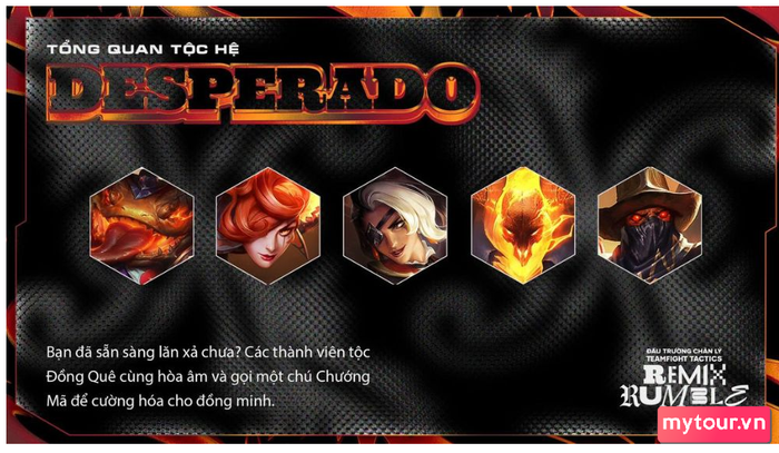 Dưới đây là tất cả thông tin về 15 tộc hệ của Đấu Trường Chân Lý mùa 10 mà Mytour tổng hợp. Hy vọng sẽ hữu ích cho các cờ thủ khi khám phá phiên bản REMIX RUMBLE, sẽ được ra mắt trong bản cập nhật 13.23 vào ngày 22/11/2023. Cùng thử nghiệm phiên bản PVE tại máy chủ thử nghiệm ngay bây giờ!