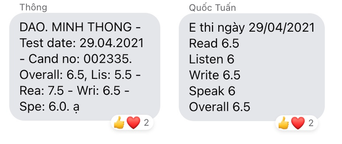 Tuấn: Listening - 6.0, Reading - 6.5