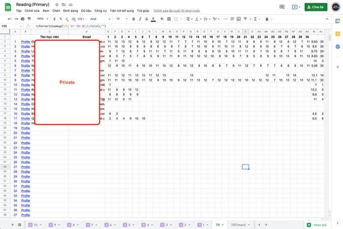 Mình đã sắp xếp nhiều form gửi dữ liệu vào cùng một tệp Google Sheet để quản lý và xử lý dữ liệu một cách thuận tiện.5. Tạo hồ sơ theo dõi tiến độ cho học viên