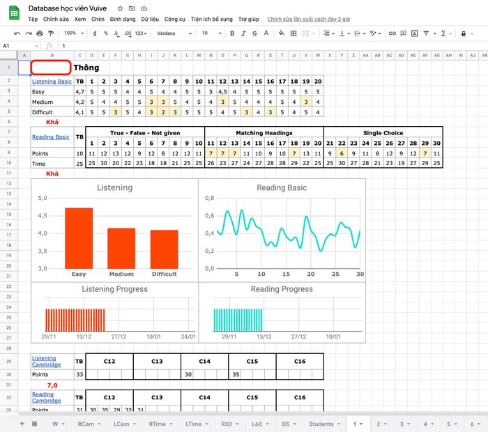 4. Giáo viên chỉ cần mở biểu mẫu là có thể theo dõi tiến độ của học viên:
